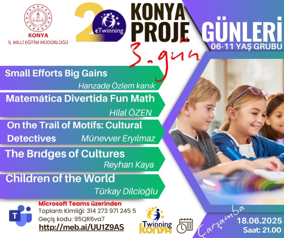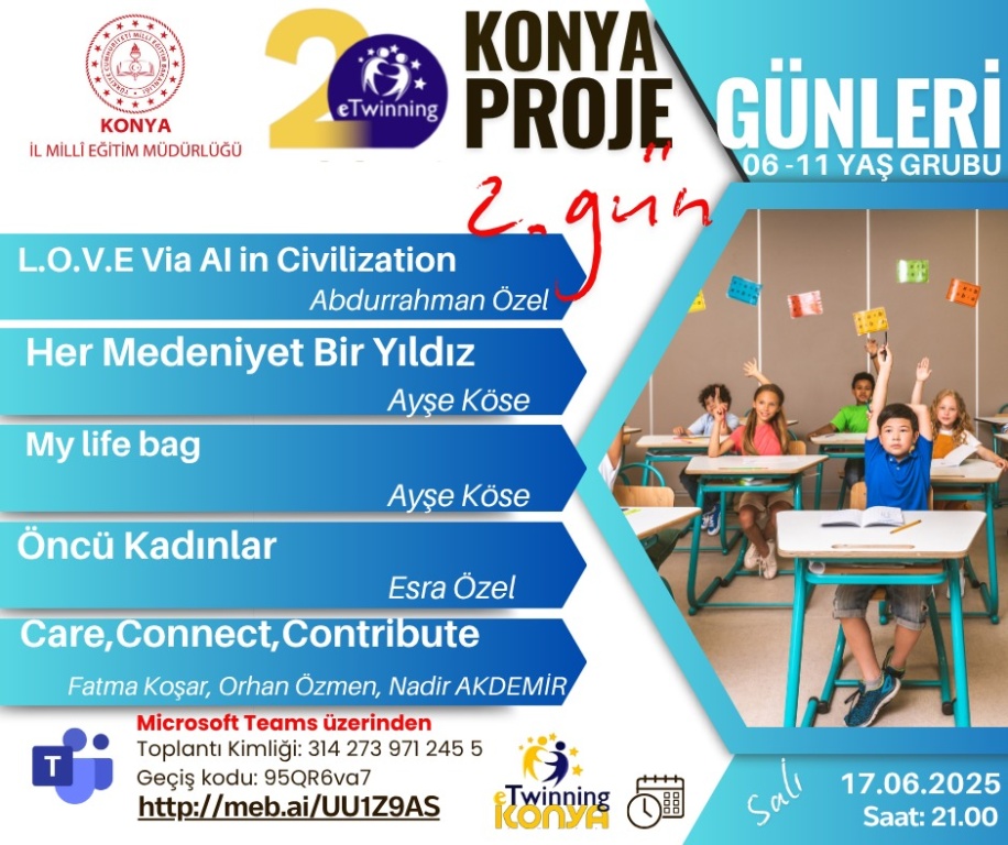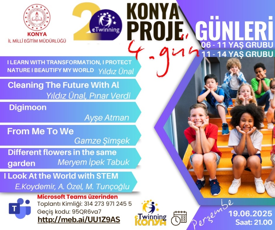 Okulumuzun yürüttüğü eTwinning projesi Konya Proje günlerinde 5. gün yayınlanacaktır. 20.06.2025 saat 21:00 da